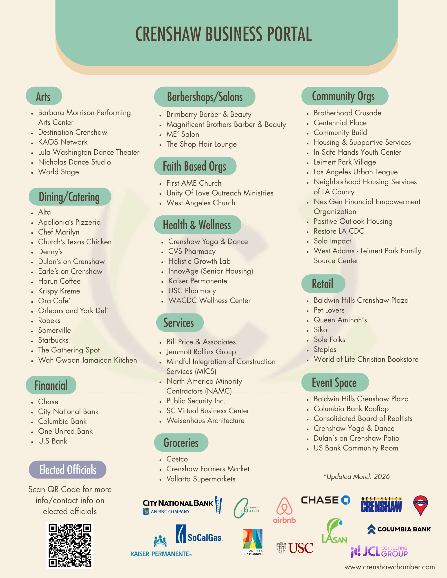 The Crenshaw Chamber of Commerce is dedicated to advancing the Crenshaw Corridor as a vibrant hub of commerce and culture—attracting investment, tourism, and community pride.
